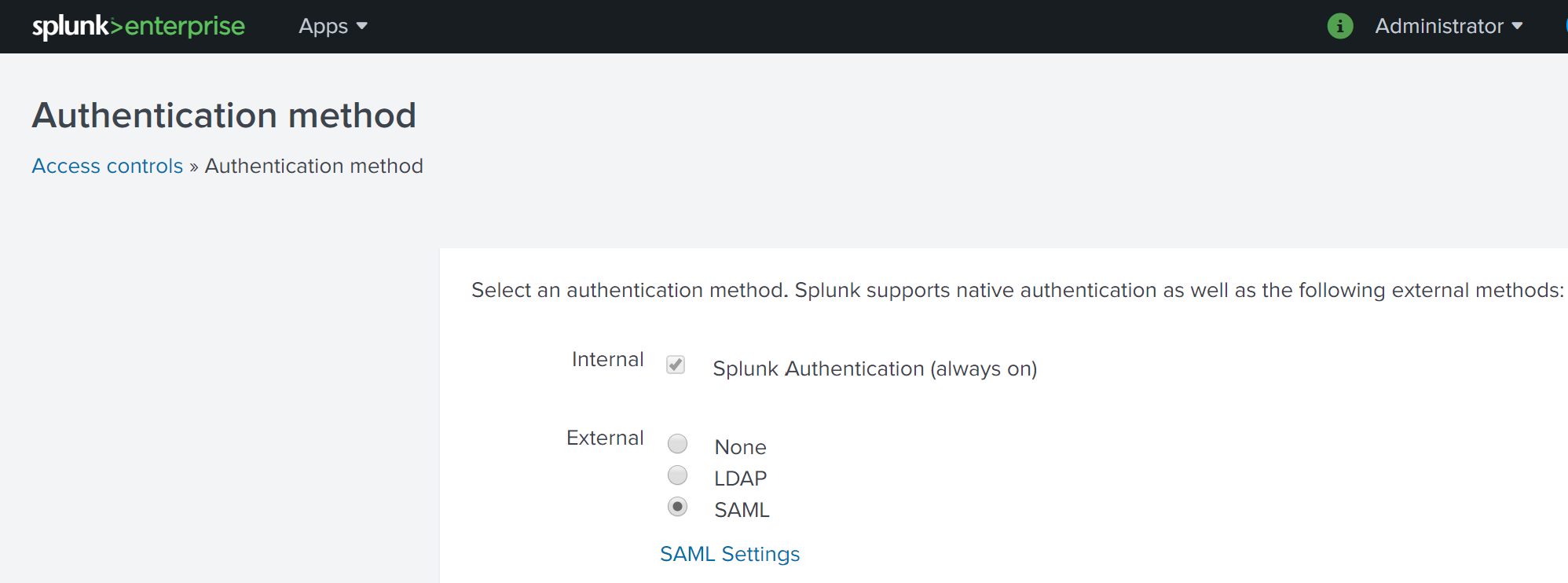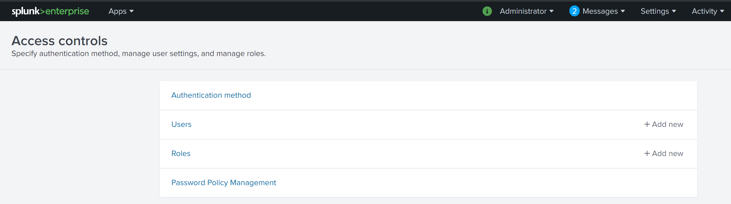 To being the process, access your Splunk Enterprise deployment’s Access Controls configuration via the following URL https://