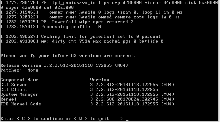After submitting yes, the cluster initialization process will begin, and then it will ask for you to “verify your InForm OS version are correct.” We enter C to continue the process.