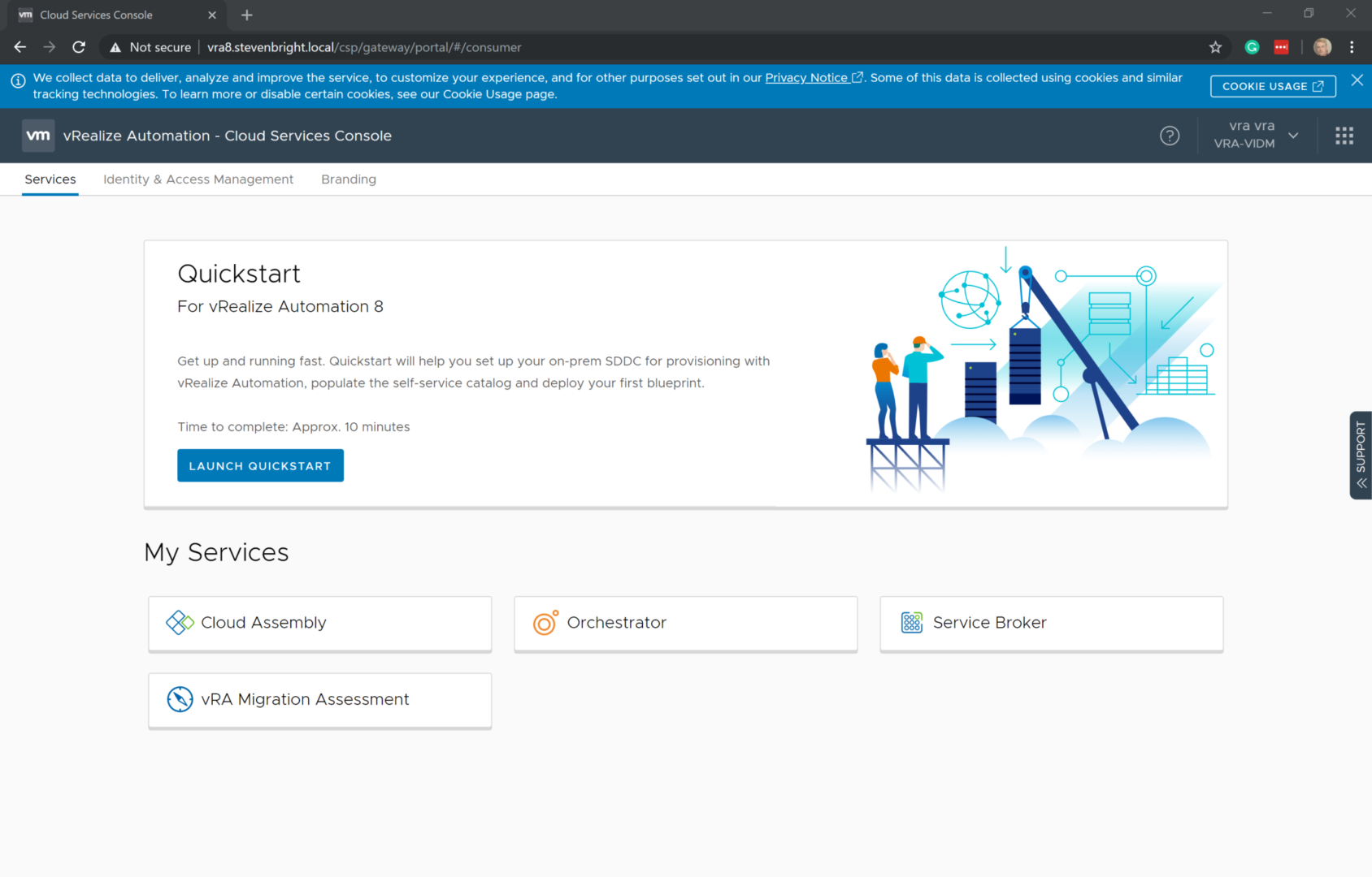 That’s all there is to it! You’ve deployed a new instance of vRealize Automation 8.0 and configured user access to the environment. In future posts, I will walk through the process of utilizing various features within vRealize Automation 8.0.