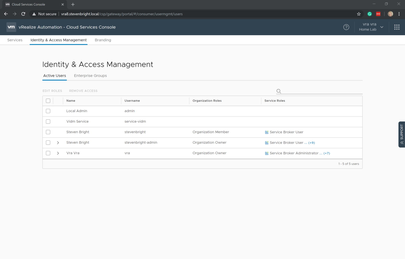 So far, we’ve completed a lot of work, including deploying vRealize Suite Lifecycle Manager, VMware Identity Manager (VMware Workspace ONE Access), and vRealize Automation 8.0 as well as configuring VMware Identity Manager to utilize Active Directory. Now we begin the process of assigning access rights to our Active Directory users and security groups.