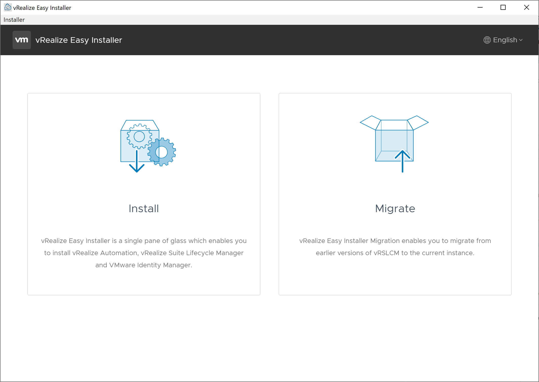 The vRealize Easy Installer supports two situations: deploying a new instance of vRealize Lifecycle Manager 8.0 or upgrading an existing instance of vRealize Lifecycle Manager to version 8.0. For this walkthrough, we’ll assume that we’re deploying a new instance of vRealize Suite Lifecycle Manager.