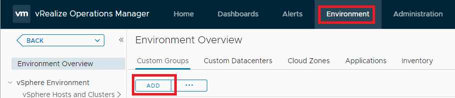 The process of creating a custom group within vRealize Operations is very straightforward. The procedure is documented within the vRealize Operations documentation titled User Scenario: Creating Custom Object Groups. For this walkthrough, I have decided to create the custom group using the “Objects to always include” criteria instead of defining dynamic rules. Using this method allows me absolute control over which devices data is collected. To get started, within vRealize Operations, click on Environment on the top navigation menu. On the resulting Environment Overview page, the Custom Groups tab is selected by default. Click the Add button to begin creating the new custom group.
