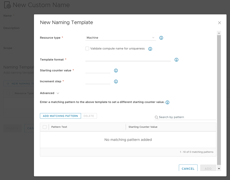 Matching patterns allow for specific strings within a per-resource naming template to increment independently of one another.
