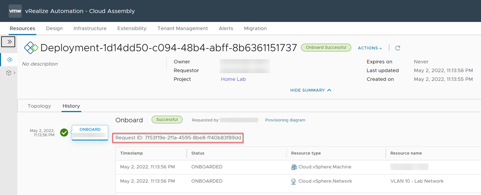 The Request ID is Now Displayed in the Deployment Request History - The Request ID is now displayed for each action on the Deployment History tab.