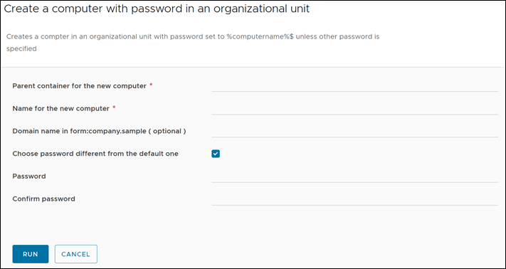 New Workflow Included for Creating Active Directory Computer Accounts - A new workflow titled Create a computer with password in an organizational unit has been included for creating an Active Directory Computer within a specified Organizational Unit.