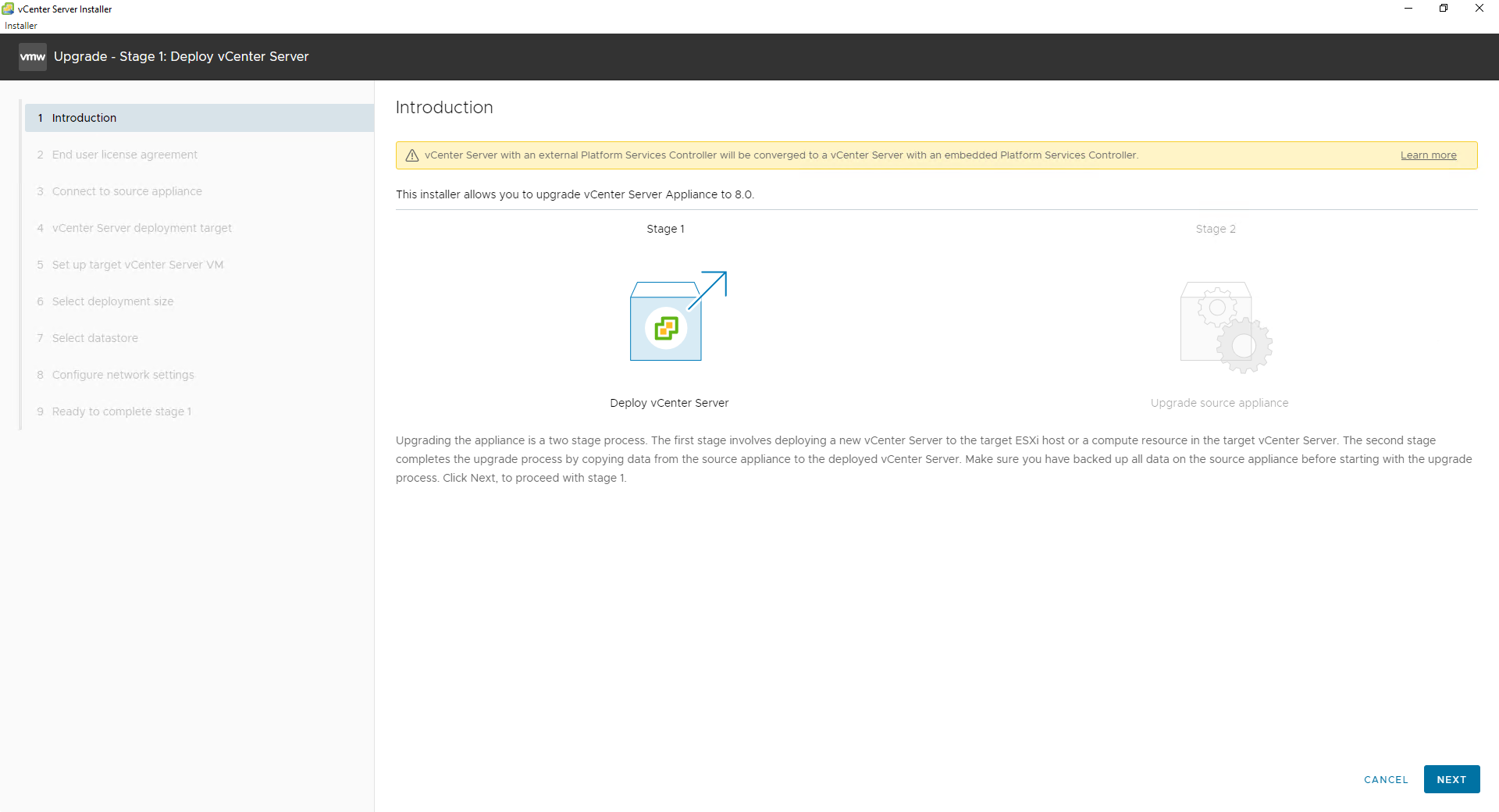If you’re like me, it has been quite some time since I’ve needed to upgrade a VMware vCenter Server instance to a new major release. Fortunately, the upgrade process for VMware vCenter Server 8.0 is similar to the method used in previous releases. In this post, I will provide a walkthrough of that upgrade process for those individuals who have never upgraded a VMware vCenter Server instance and those who need a quick brush-up on the process.