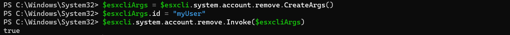 $esxcli.system.account.remove.Invoke($esxcliArgs)