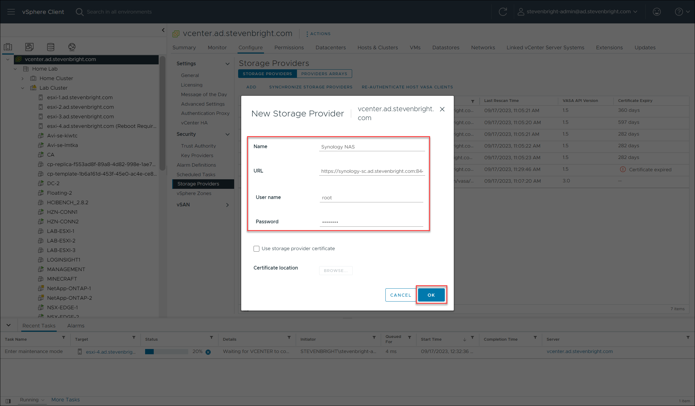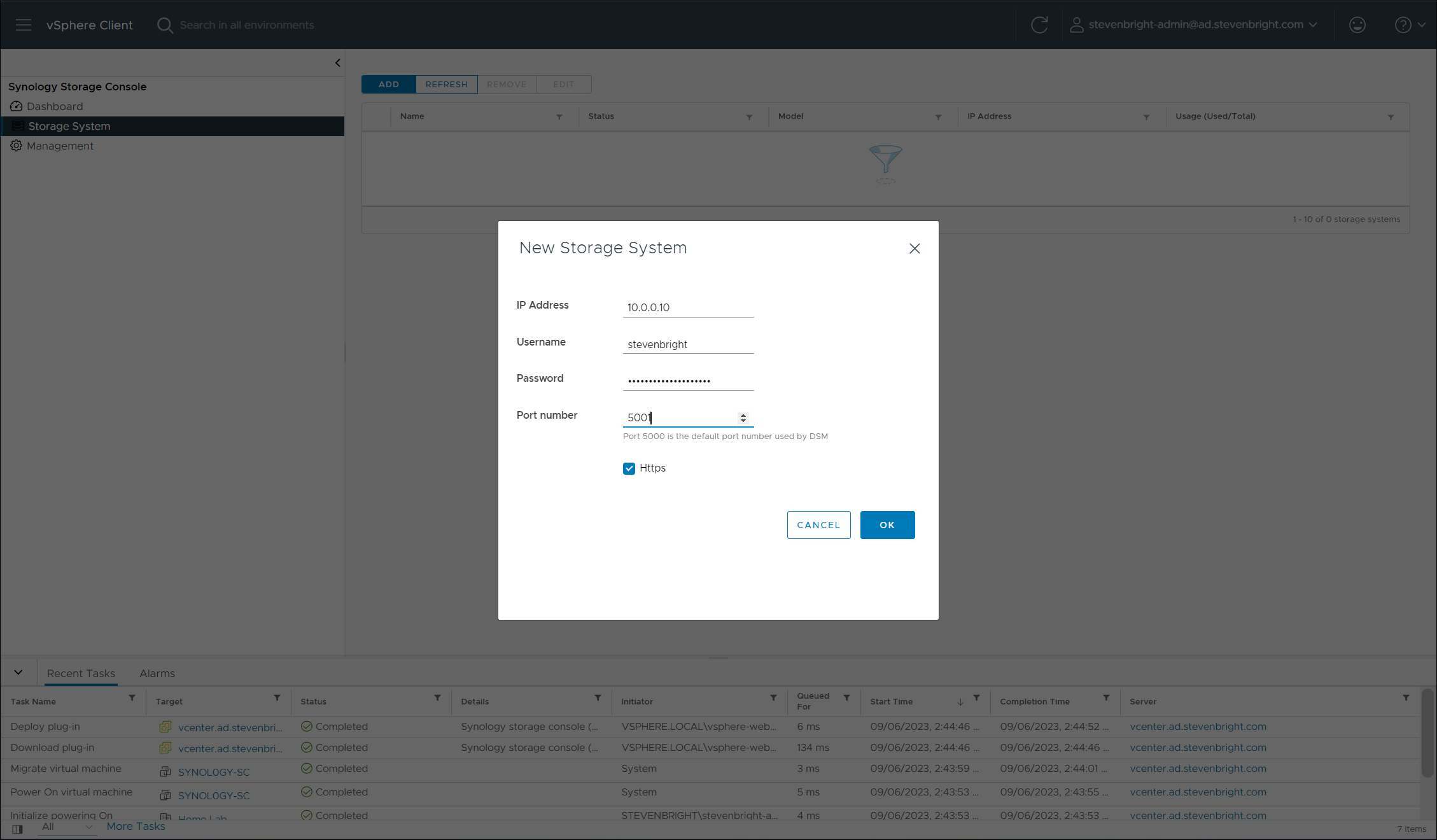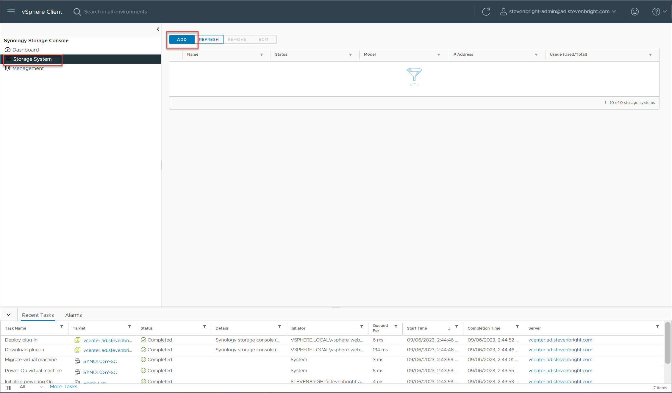 If you are utilizing more than one Synology storage system within your virtual infrastructure, repeat these steps to add each additional storage system.